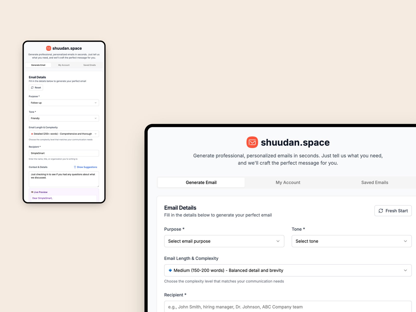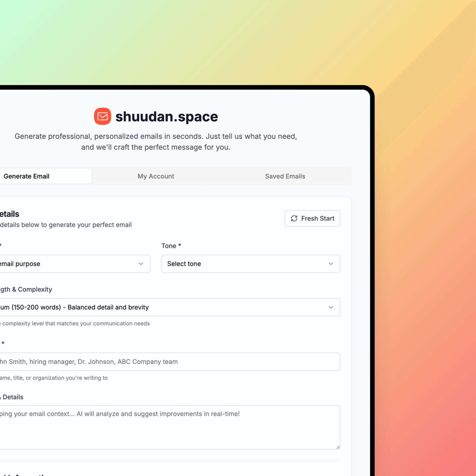 Shuudan.space is a multilingual, AI-powered web application built to transform the way people write and manage emails. Designed as a smart email assistant, it helps users craft, edit, and enhance their communication with greater clarity, professionalism, and efficiency.