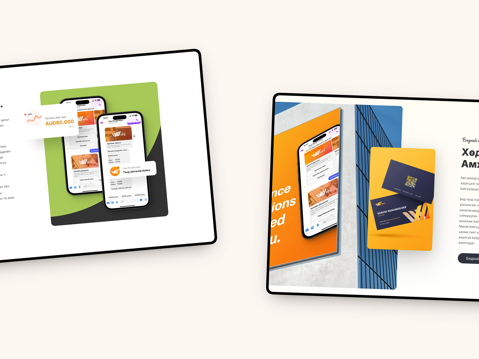 The website highlights the company’s core offerings with clarity — including consumer loans, vehicle financing, AUD–MNT currency exchange, and cross-border remittance. All content is presented bilingually in English and Mongolian, with a responsive, mobile-friendly design that ensures accessibility across devices.