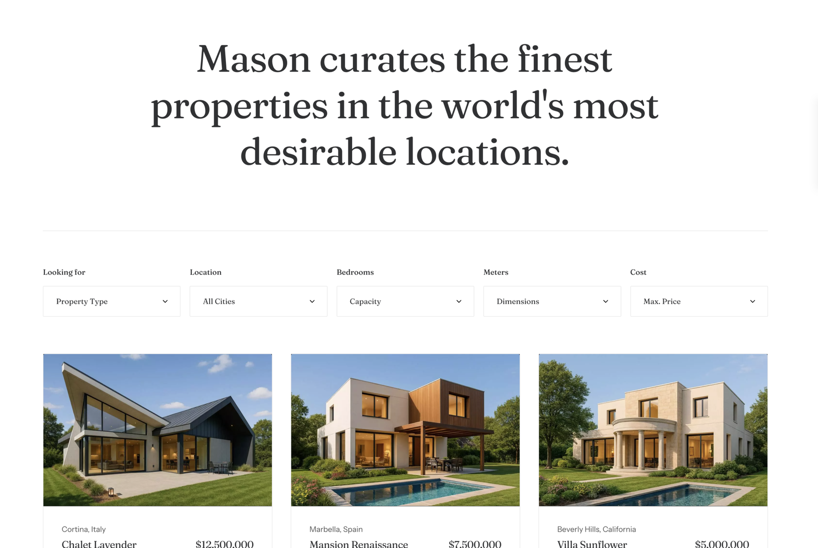 Highlight your best properties on the homepage.