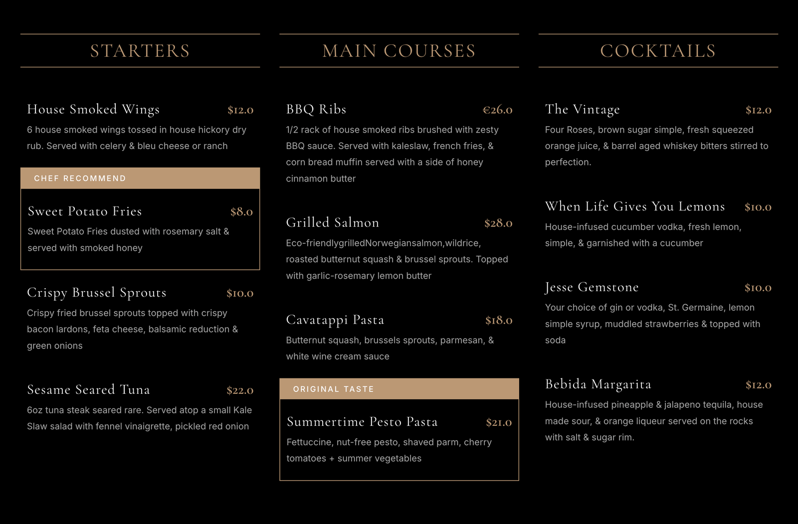 Highlight popular meals, new items, or chef specials.